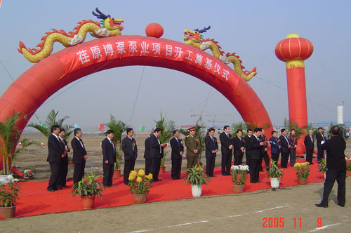 2005年11月9日,荏原博泵有限公司開工奠基儀式在淄博高新技術(shù)開發(fā)區(qū)隆重舉行。這標(biāo)志著荏原博泵泵業(yè)有限公司的建設(shè)工作已經(jīng)全面啟動,預(yù)示著荏原博泵泵業(yè)有限公司將穩(wěn)健地邁上蓬勃發(fā)展的道路。