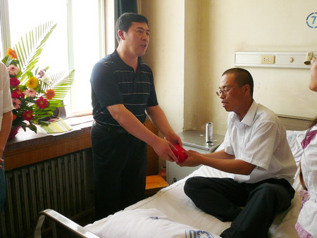 6月24日,公司總經(jīng)理孫龍平,黨總支書記張玉琴及人力資源部部長姜作棟等一行,專程到德州人民醫(yī)院,將寄托著廣大員工深情厚誼的28150元捐款送到了孫富強的病榻前。鼓勵他要積極樂觀,堅定戰(zhàn)勝病魔的信心,期盼著他早日康復(fù),重返工作崗位。